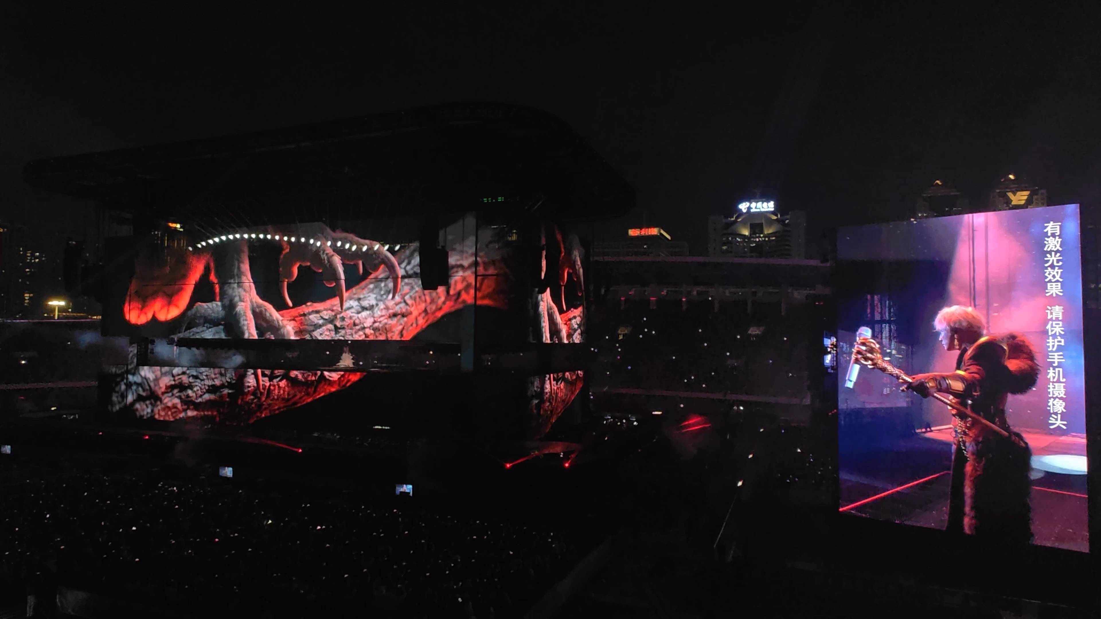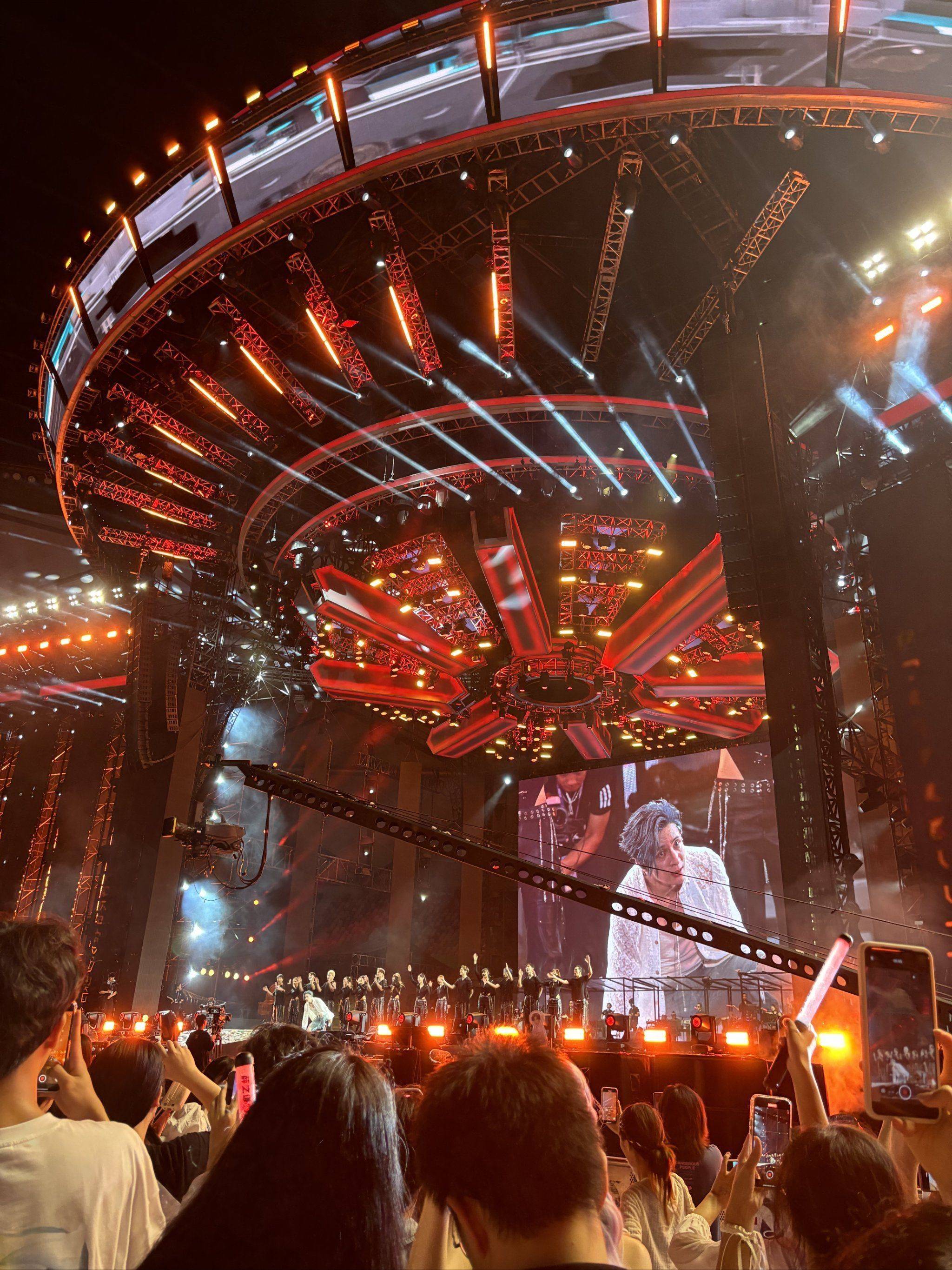 别看老薛在语言上“摆烂”,业务能力却一点不含糊。当晚他连唱28首歌,从《演员》到《天外来物》全程稳如CD,还特意准备了粤语版《刚刚好》。不过最绝的是talk环节,他指着台下观众用蹩脚粤语问:“你地(你们)今日食咗(吃了)咩啊?” 结果自己先笑场:“完了,我也不知道自己在说啥!” 这种“认真搞笑”的反差萌,难怪能让广州场加场三次还秒罄。